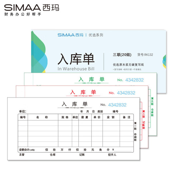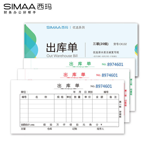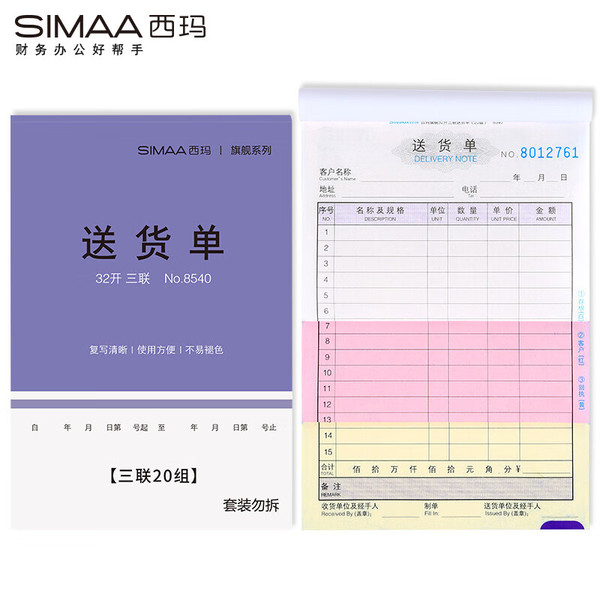 西玛(SIMAA)旗舰紫三联送货单 32k 130*190mm 20组10本装 销货清单销售出货出库无碳复写单据 8540