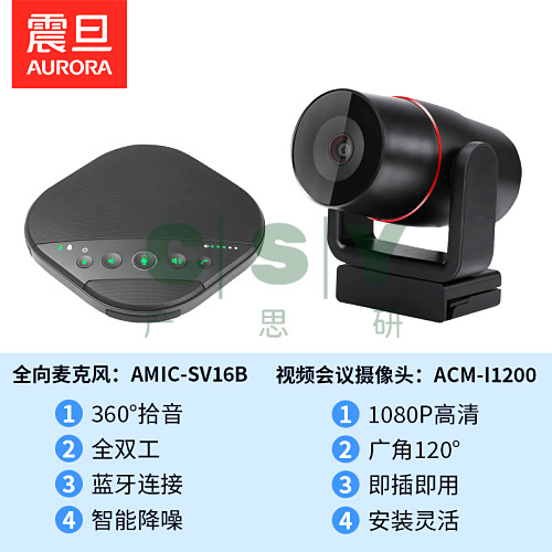 震旦AURORA视频会议全向麦克风音频处理器会议室拾音器 无线USB蓝牙扬声器 免驱动远距离 顺丰包邮AMIC-SV10B-SV16B会议音视频套餐 (适用30~100㎡)(ACM-1200摄像头)