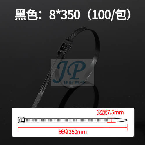 淘气堡扎带塑料尼龙捆绑带彩色捆扎带平扣束线带儿童乐园专用配件-8*350黑色/7.5mm宽/100根