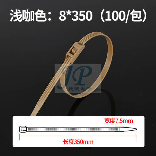 淘气堡扎带塑料尼龙捆绑带彩色捆扎带平扣束线带儿童乐园专用配件-8*350浅咖/7.5mm宽/100根