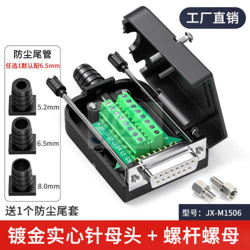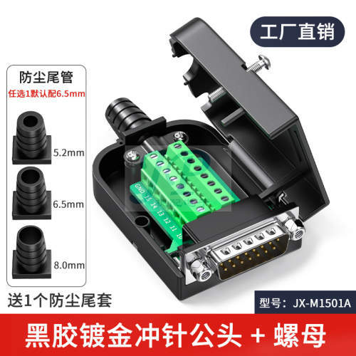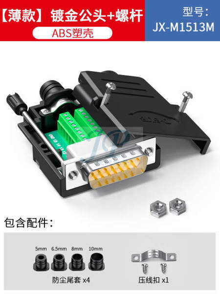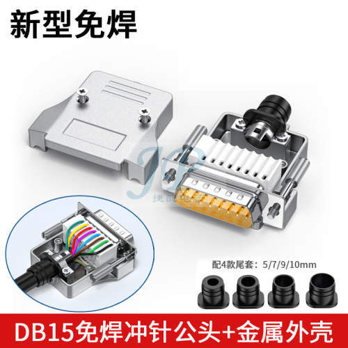薄款DB15免焊接头15针免焊插头公头母头15P连接器接线端子转接头-【小体积-易接线】DB15免焊镀金公头+金属壳MX15KM124
