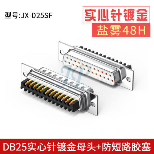 DB25公头母头2排25针插头并口接头45度出线孔连接器D-SUB25P接口-DB25实心针母头(前铆螺母)+45度金属壳2218