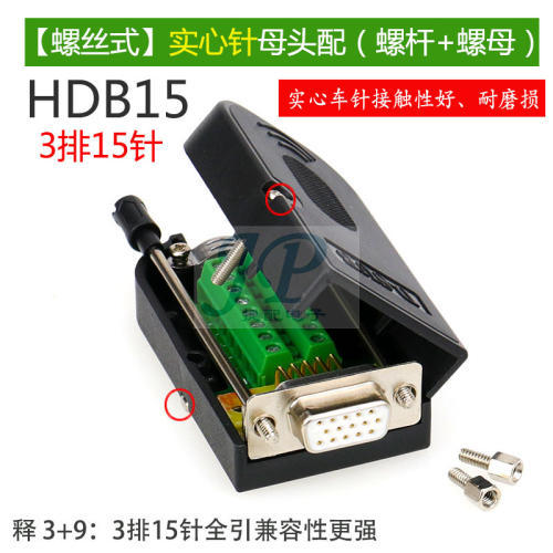 DB9 DB15 DB25针DB26 37 PIN VGA公母头 免焊 接头COM串口9针插件-VGA3排15针免焊实心针母头配螺杆螺母