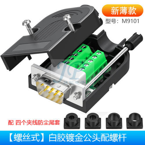 DB9 DB15 DB25针DB26 37 PIN VGA公母头 免焊 接头COM串口9针插件-【薄款】DB9免焊公头配螺杆螺母【螺丝式】