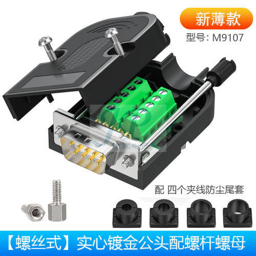 DB9 DB15 DB25针DB26 37 PIN VGA公母头 免焊 接头COM串口9针插件-【薄款】DB9免焊实心针公头配螺杆螺母【螺丝式】