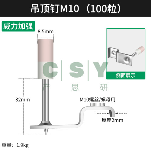 规格:【双基药强威力】M10吊顶钉100枚-大枪