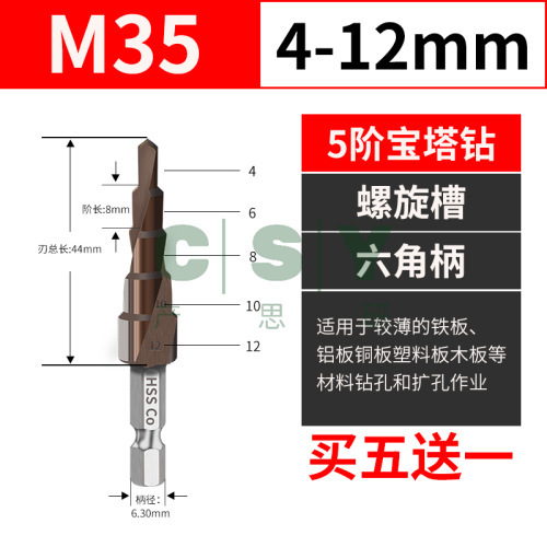 规格:M35六角柄【4-12mm 5阶】螺旋槽