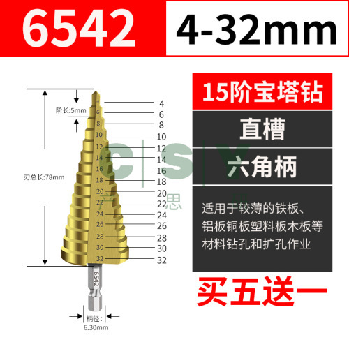 规格:6542六角柄【4-32mm 15阶】螺旋槽