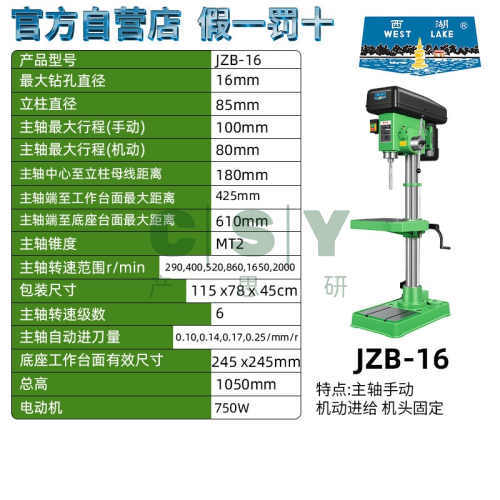 杭州西湖台钻Z512b Z516 高精度精密重型工业级380v钻孔台式钻床-西湖正品Z516/单相220V/550W 工业级
