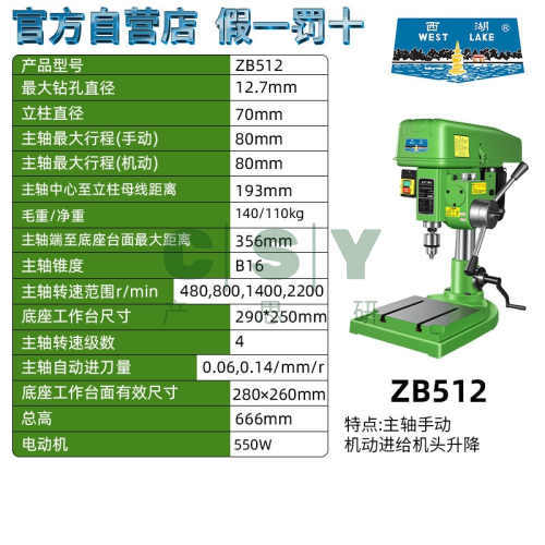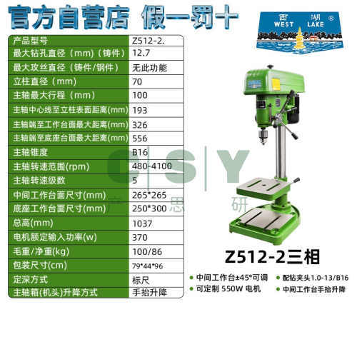 杭州西湖台钻Z512b Z516 高精度精密重型工业级380v钻孔台式钻床-西湖正品Z512B/三相380V/370W 工业级