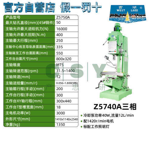 西湖方柱立式钻床Z5140A Z5132A Z5125A Z5035A数控自动深孔钻床-西湖Z5750A立钻(官方正品)