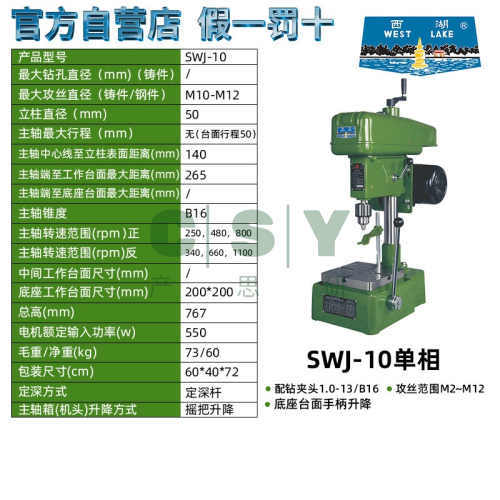 西湖攻丝机西湖牌攻丝机台式攻牙机西湖swj3 6 6A 10 12 16 20 33-杭州西湖牌SWJ-10单相220v原装正品 上升式