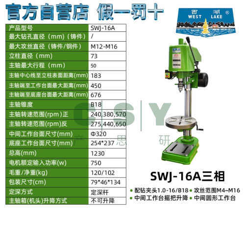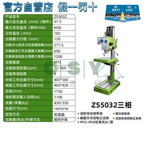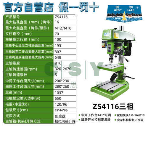 西湖钻攻一体机钻攻两用台钻ZS4112 ZS4120 JZS-25B 5032钻孔攻丝-西湖ZS4116三相/550W 摇把升降/铸M12钢M10