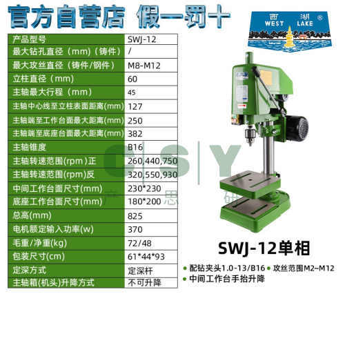 西湖攻丝机西湖牌攻丝机台式攻牙机西湖swj3 6 6A 10 12 16 20 33-杭州西湖牌SWJ-12单相220v原装正品 方形工作台