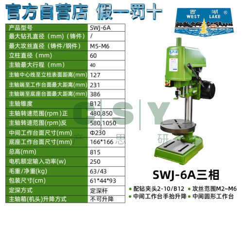 西湖攻丝机西湖牌攻丝机台式攻牙机西湖swj3 6 6A 10 12 16 20 33-杭州西湖牌SWJ-6A三相380v原装正品 圆形工作台