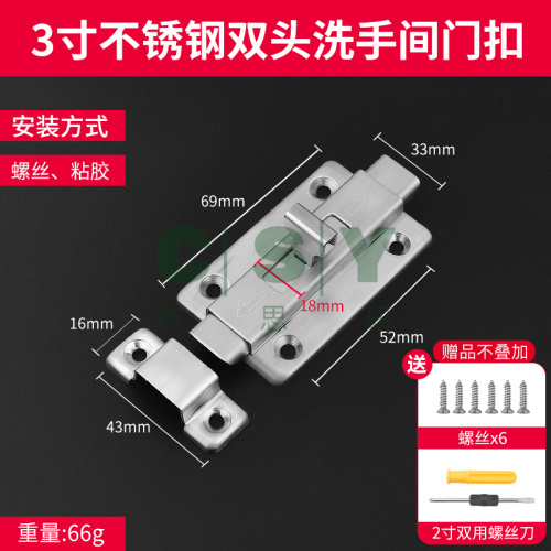 规格:3寸 不锈钢洗手间门扣(送螺丝+螺丝刀)