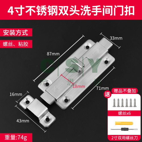 规格:4寸 不锈钢洗手间门扣(送螺丝+螺丝刀)