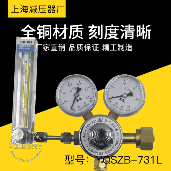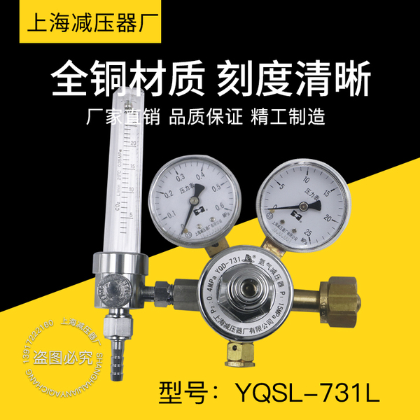 上海减压器厂 氮氩氦标气混合气体双表头带流量计减压器 0-50L YQSL-731L-50L