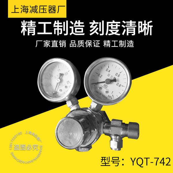 上海减压器厂 高稳定双级减压器 调压阀氮氦气二氧化碳氩气减压阀 0.6*25 YQJ-S 0.6 YQJ-S 0.6