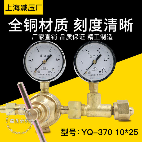 上海减压器厂 压力表YQ-374 空气氩气氦气 甲烷 混合气体高压减压器 6*25高纯氮气 YQ-370-6DQ