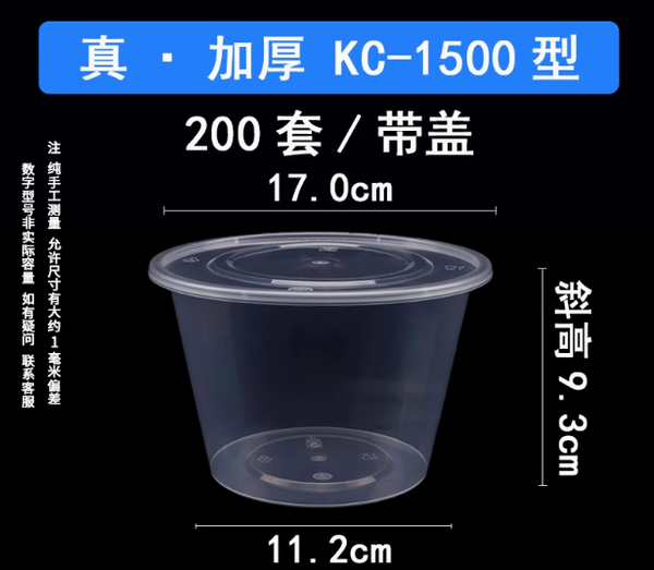 规格:加厚款 1500型号透明圆形 200套/箱(带盖) 200套/箱