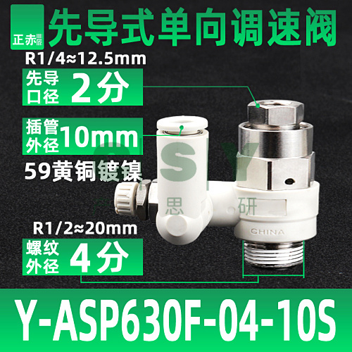 SMC型先导式单向调节阀ASP330F-01-06调速阀530/630-02-/10/12/08-ASP630F-04-10S 黄铜镀镍