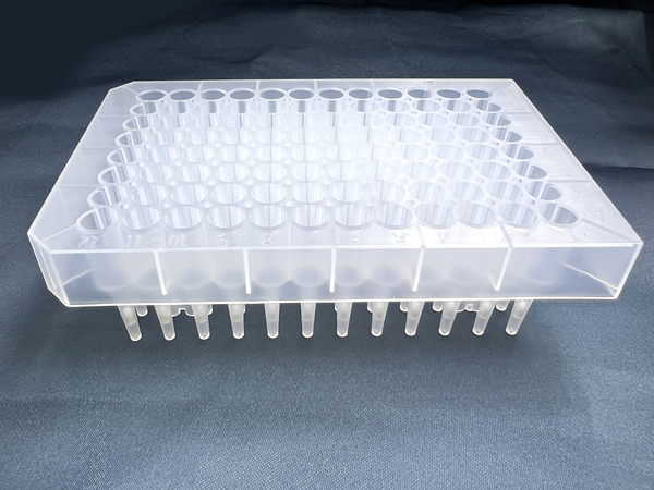 96孔100ul半裙边,h12切角,透明框,白管10块/包