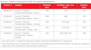 This product is comprised of the following: 6.0 - 8.0μm polystyrene beads suitable for use in flow cytometry assays. The bead slurry should have a concentration of 1.5-3.0 million beads/mL. Green beads can be mixed with the negative control compensation (DUO84010), or collected alone.