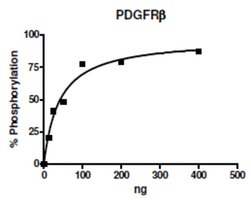 Human PDGFRbeta (GenBank Accession No. NM_002609), cytoplasmic domain, amino acids 558-1106 (end) with N-terminal His-tag, MW= 62 kDa, expressed in Sf9 cells via a Baculovirus expression system.