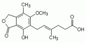 An immunosuppressive agent that inhibits de novo purine nucleotide synthesis via inhibition of inosine monophosphate dehydrogenase and prevents the formation of XMP and GMP. Useful for selection of animal cells that express the E. coli gene coding for xanthine-guanine phosphoribosyltransferase. Also suppresses cytokine-induced nitric oxide production in mouse and rat vascular endothelial cells.
