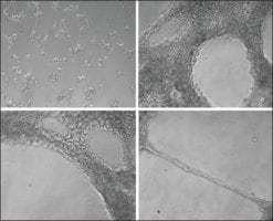 当达到20-40℃时,ECM凝胶将发生热活化聚合,形成重组基底膜。 当PC12细胞在该ECM凝胶薄层上生长时,将在2天内形成神经突。