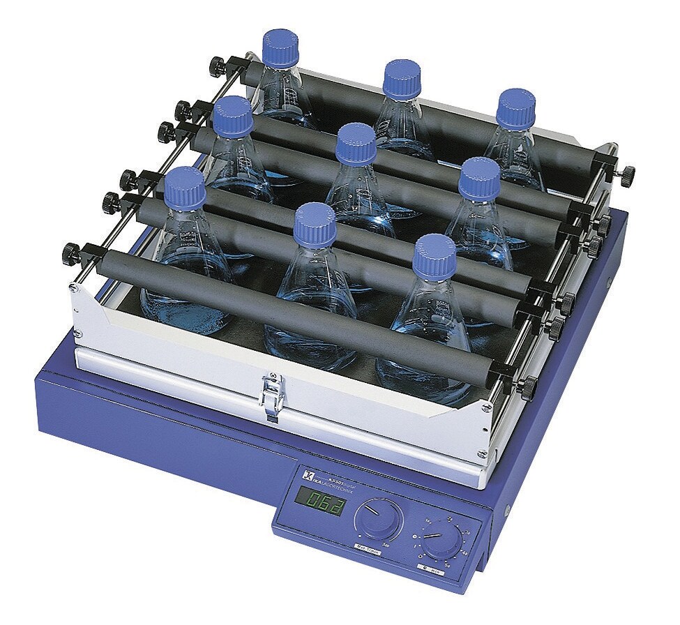 comes with integrated USD and RS 232 interface Low profile laboratory shaker with a pleasant design, large mounting surface and a loading capacity of 33 lbs., depending on the attachment. The horizontal shaker features a reciprocating motion. Infinitely variable speed control from 0-300 rpm, digitally displayed. Timer 0-56 min and setting for continuous operating. Ideally suitable for vessels with a volume of more than 250 mL, e.g. round flasks, Erlenmeyer flasks, culture flasks, culture bottles. For biological and microbiological growth tests, for the production of stock solution, etc. Guaranteed continuous operation even under extreme loads.