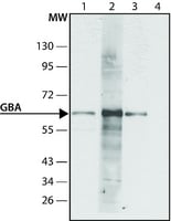 western blot: 1-2 μg/mL using HEK293-T cells lysate expressing human glucocerebrosidase (GBA)