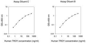 The Human TROY ELISA (Enzyme-Linked Immunosorbent Assay) kit is an in vitro enzyme-linked immunosorbent assay for the quantitative measurement of human TROY in serum, plasma, cell culture supernatants and urine.