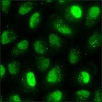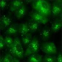 This product is a human A549 cell line in which the genomic STAT1 gene has been endogenously tagged with a Green Fluorescent Protein (GFP) gene using CompoZr® zinc finger nuclease (ZFN) technology. Integration resulted in endogenous expression of the fusion protein in which GFP is attached to the C-terminus of STAT1. Fluorescence imaging shows STAT1-GFP expression throughout the cell. Upon activation with a ligand such as interferon-gamma (INF-γ), the cell line shows redistribution of STAT1 from the cytoplasm to the nucleus, making it useful for high content screening of compounds that modulate STAT1 activity. This stable cell line was expanded from a single clone. The target’s gene regulation and corresponding protein function are preserved in contrast to cell lines with overexpression via an exogenous promoter.