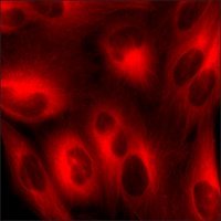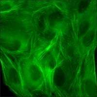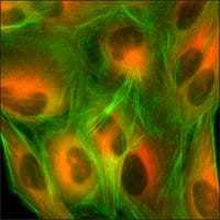 This product is a human U2OS cell line in which the genomic ACTB gene has been endogenously tagged with a Green Fluorescent Protein (GFP) gene and in which the genomic TUBA1B gene has been endogenously tagged with a Red Fluorescent Protein (RFP) gene using CompoZr® Zinc Finger Nuclease technology. Integration resulted in endogenous expression of a fusion protein in which GFP is attached to the N-terminus of actin and of a fusion protein in which RFP is attached to the N-terminus of tubulin. Fluorescence imaging shows that the actin can polymerize to form the characteristic pattern of actin filaments and that the tubulin can polymerize to form the characteristic pattern of microtubules. This stable cell line was expanded from a single clone. The target’s gene regulation and corresponding protein function are preserved in contrast to cell lines with overexpression via an exogenous promoter.