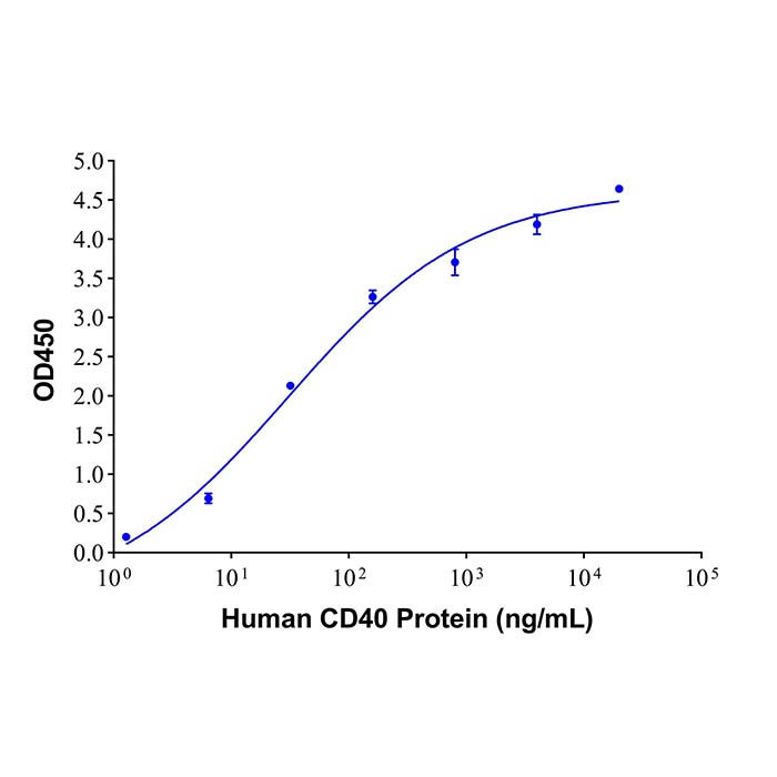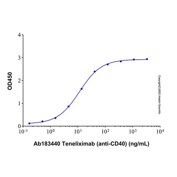 Immobilized Recombinant Human CD40 Protein (rp144000) at 1.0 μg/mL can bind Teneliximab (anti-CD40) (Ab183440) with the EC50 of 11.50 ng/mL.