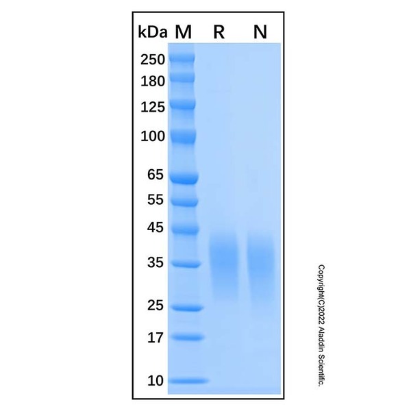 SDS-PAGE:30 - 40 kDa, under reducing conditions; 30 - 40 kDa, under non-reducing conditions.