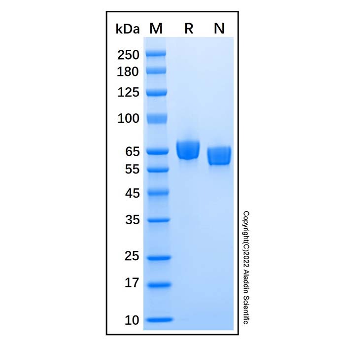SDS-PAGE:60 - 70 kDa, under reducing conditions; 55 - 65 kDa, under non-reducing conditions.