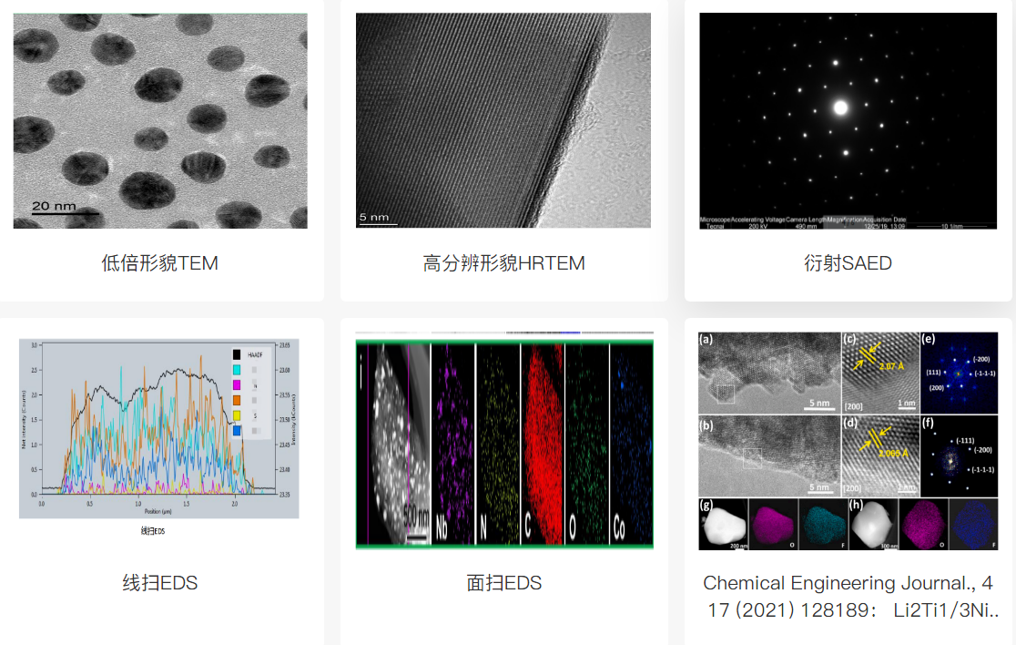 3.样品拍摄数量,TEM10张左右,HRTEM包含TEM共15张左右;能谱和衍射原则上只做一个区域,多个区域另外收费;