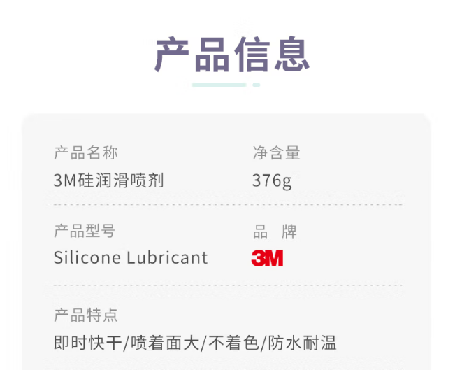 "3M Silicone Lubricant 硅质润滑喷剂 耐高温快干持久性强 375g"商品可能已被商家删除,您可查看其他相似商品!