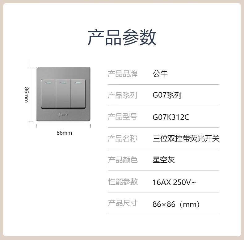 "公牛(BULL)开关86型暗装墙壁/G07星空灰 三开双控"商品可能已被商家删除,您可查看其他相似商品!