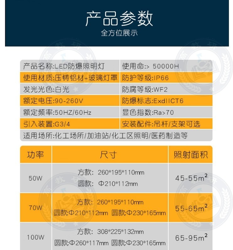 "威尔克 LED防爆灯 照明灯 70W/26*19.5*11 方形防爆LED灯"商品可能已被商家删除,您可查看其他相似商品!