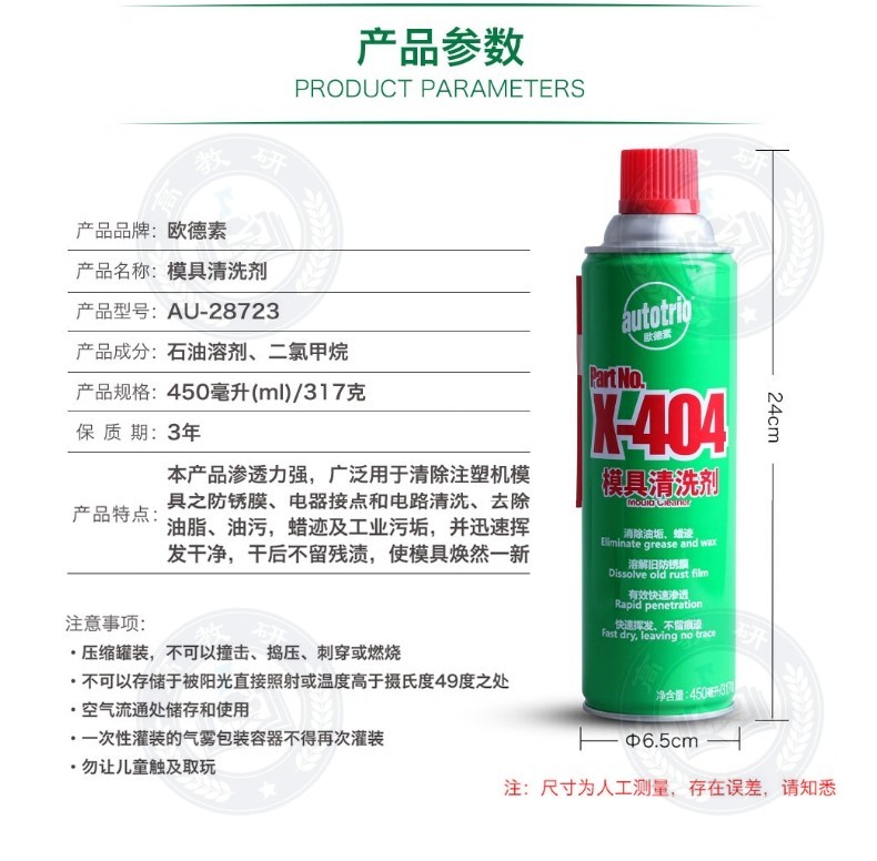 "欧德素 模具清洁剂 清洗剂 X-404/450ml清洗剂/1瓶"商品可能已被商家删除,您可查看其他相似商品!