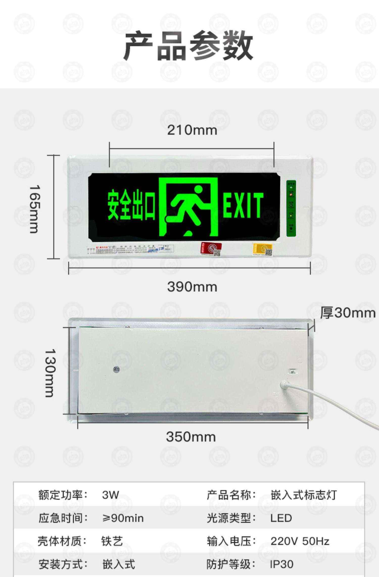 "沈防 嵌入式安全出口指示牌暗装内嵌式疏散标志灯 36*16.5cm双向(无底盒)"商品可能已被商家删除,您可查看其他相似商品!