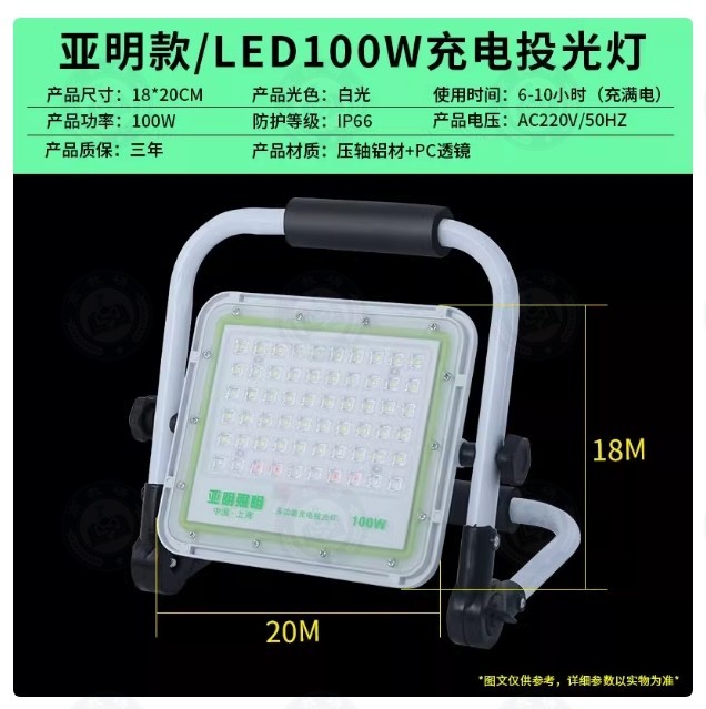 "充电LED手提灯移动应急投光灯照明灯亚明款/LED100W手提式/续航10-20小时/带警示灯"商品可能已被商家删除,您可查看其他相似商品!