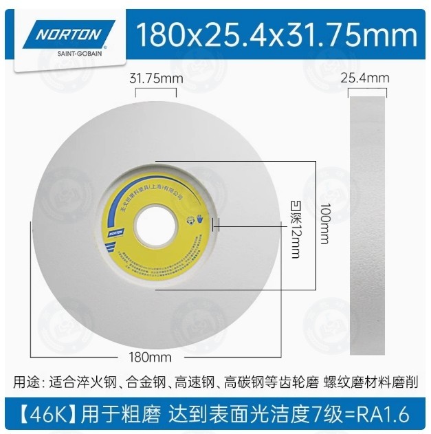 "诺顿 白色砂轮片小磨床砂轮单面凹180*25.4*31.75(46目)厚度25.4"商品可能已被商家删除,您可查看其他相似商品!