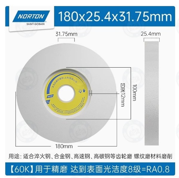 "诺顿 白色砂轮片小磨床砂轮单面凹180*25.4*31.75(60目)厚度25.4"商品可能已被商家删除,您可查看其他相似商品!
