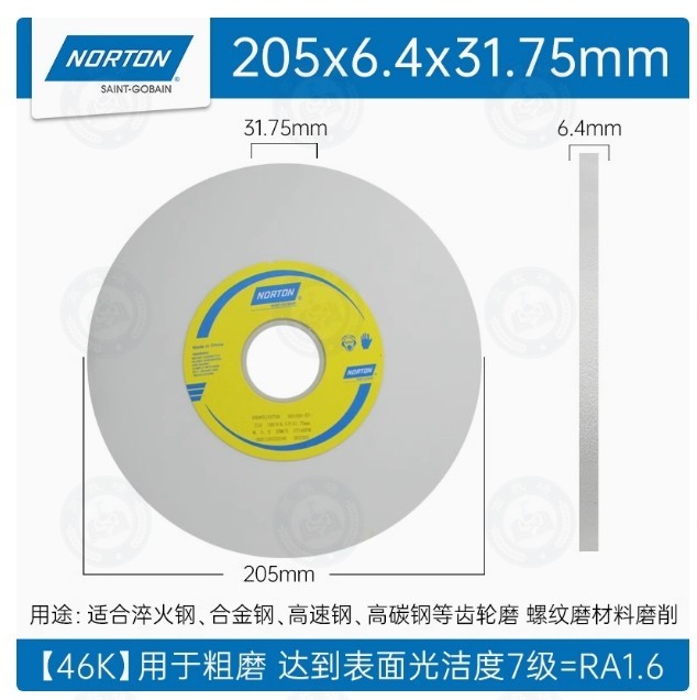"诺顿 白色砂轮片小磨床砂轮205*6.4*31.75(46目)厚度6.4"商品可能已被商家删除,您可查看其他相似商品!