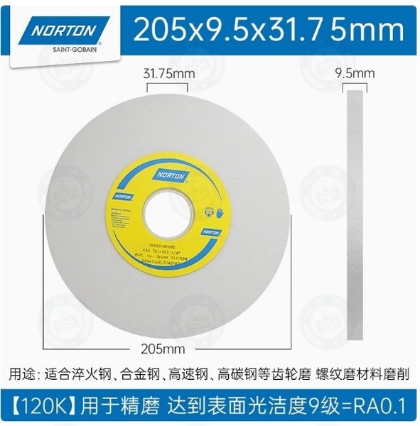 "诺顿 白色砂轮片小磨床砂轮205*9.5*31.75(120目)厚度9.5"商品可能已被商家删除,您可查看其他相似商品!